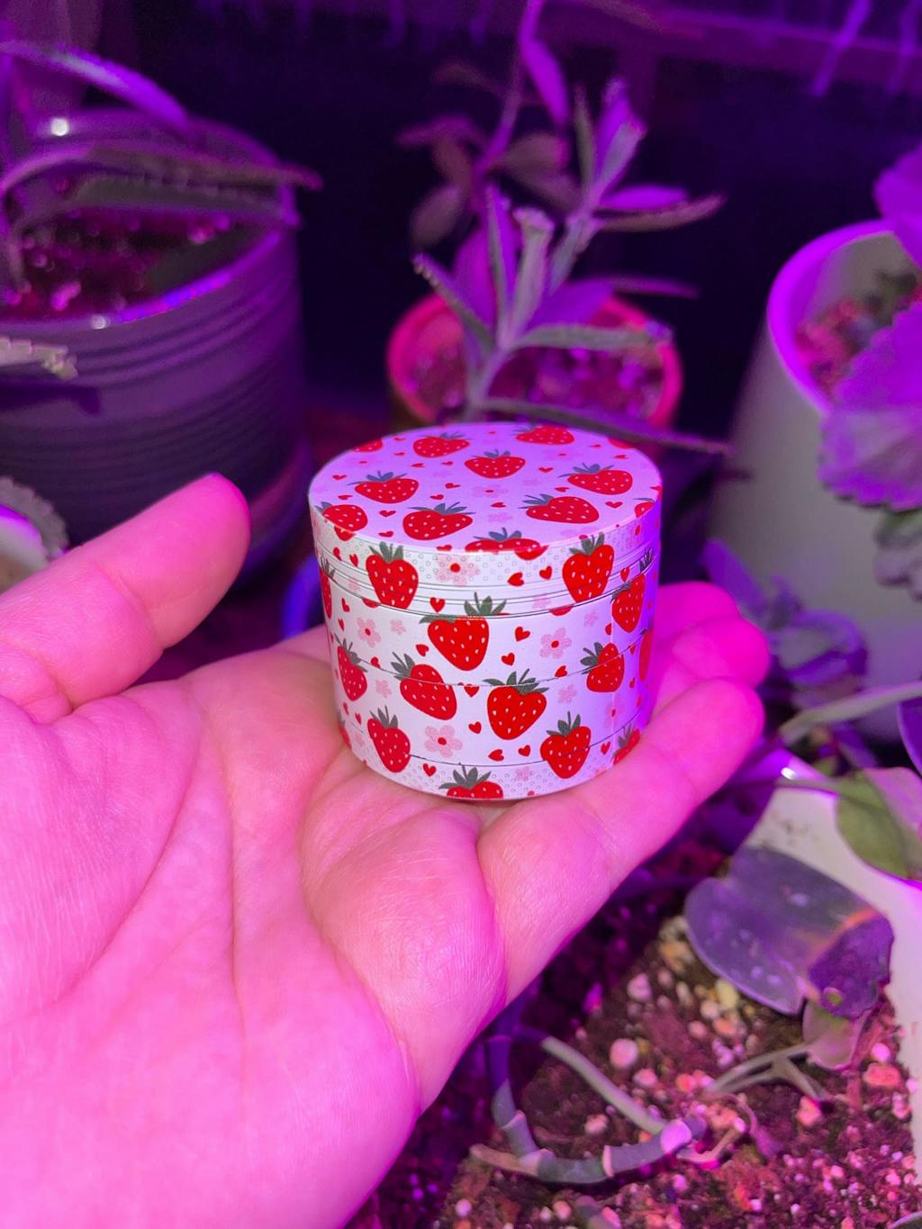 The matching grinder is 2" in size, featuring a 4-piece design with included pollen catcher to filter out fine particulates.
